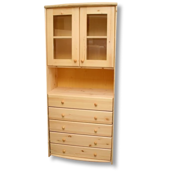 Tamás 2 ajtós 5 fiókos vitrines borovi fenyő szekrény 80x187x45 cm